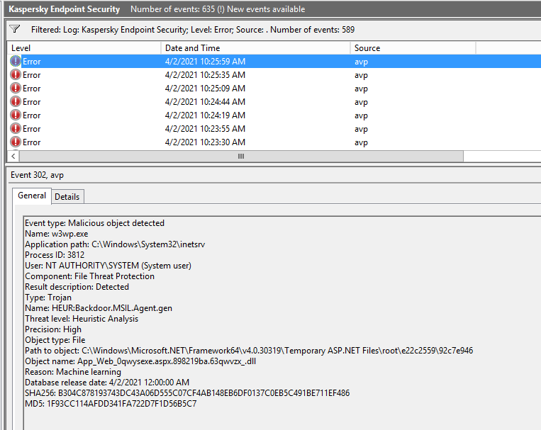 Now antivirus is found HEUR:Backdoor.MSIL.Agent.gen on server Exchange2013 we need to fixed [moved]