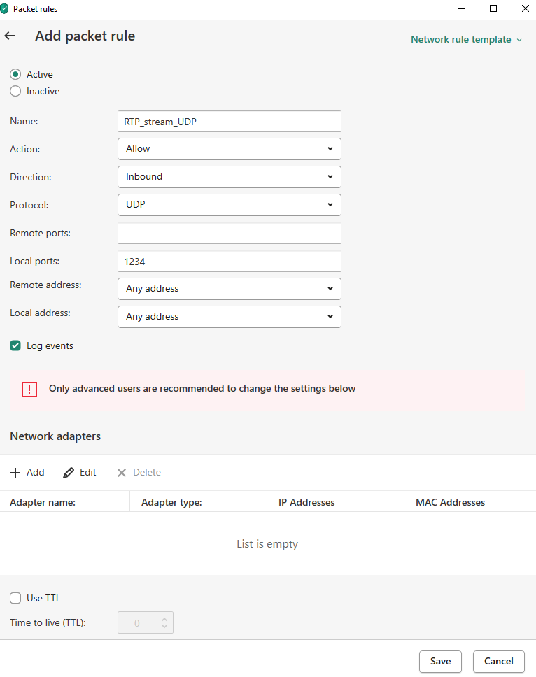 Open port 1234 on windows 10 with Kaspersky Total Security