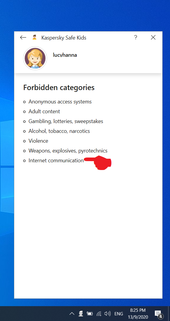 In RESTRICTIONS FOR WEBSITE CATEGORIES, change Internet communication to Forbidden → see images 1 &2, result = Facebook blocked → image 3 & 4