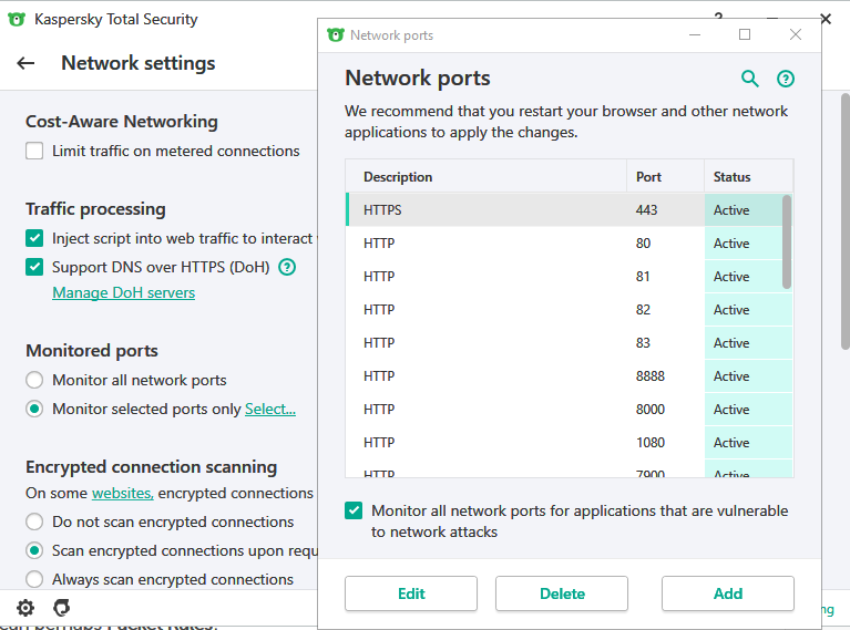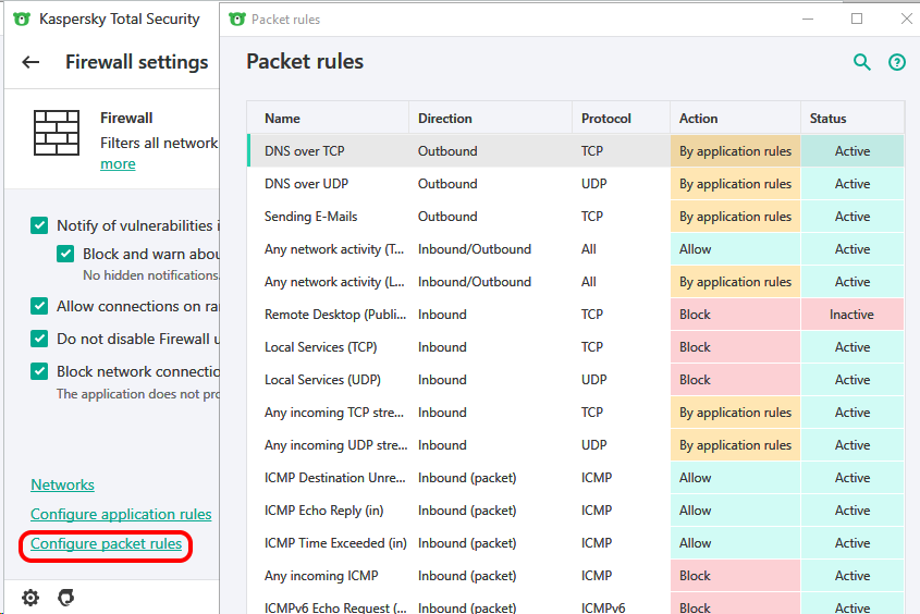Port Release in Kaspersky Total Security (2019)