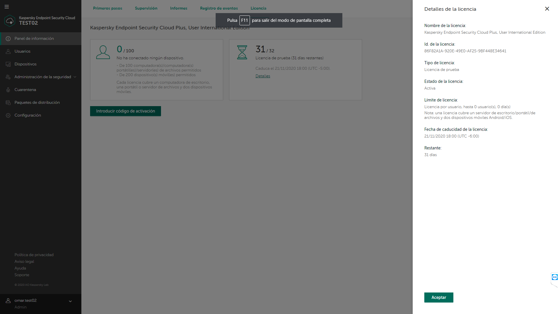 Problemas con Licencia y Generación de Paquetes - KES Cloud Prueba [MOVIDO]