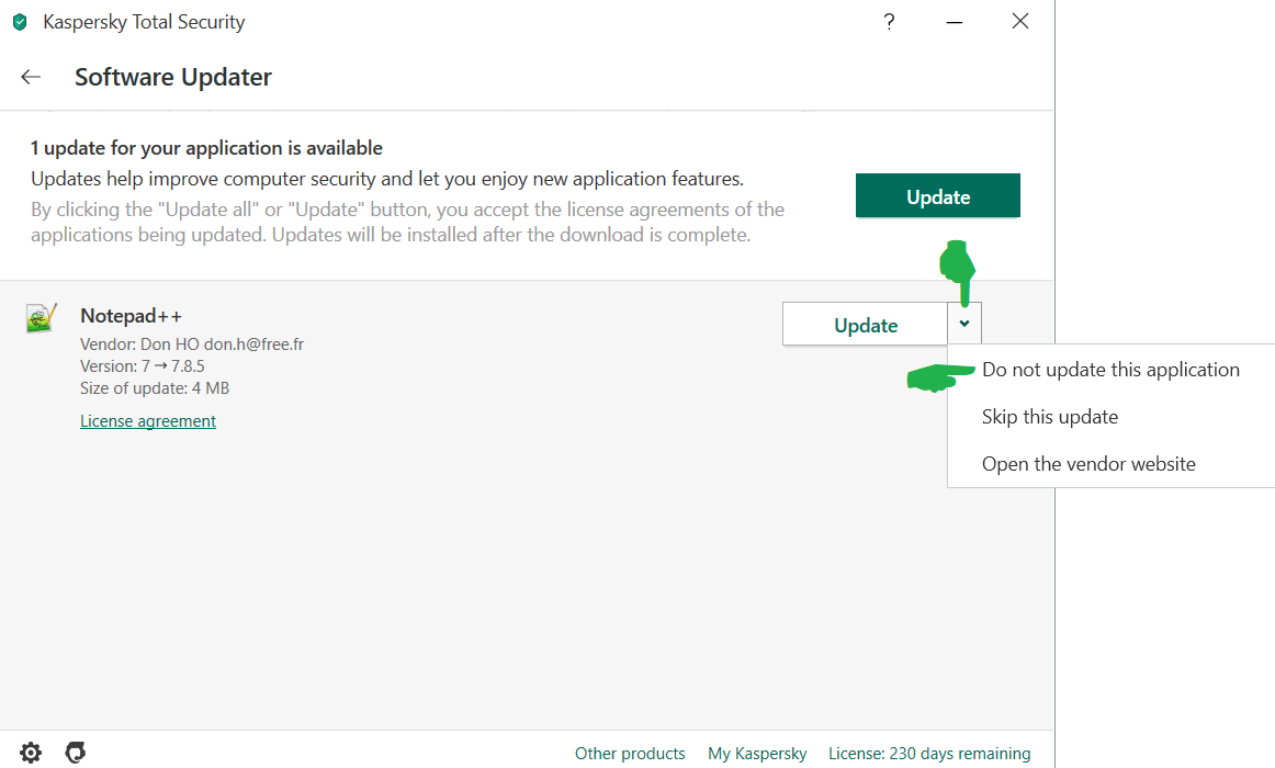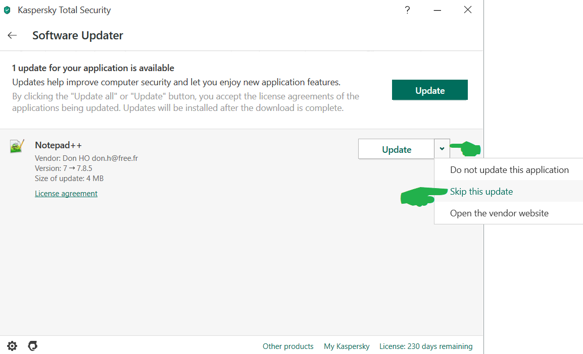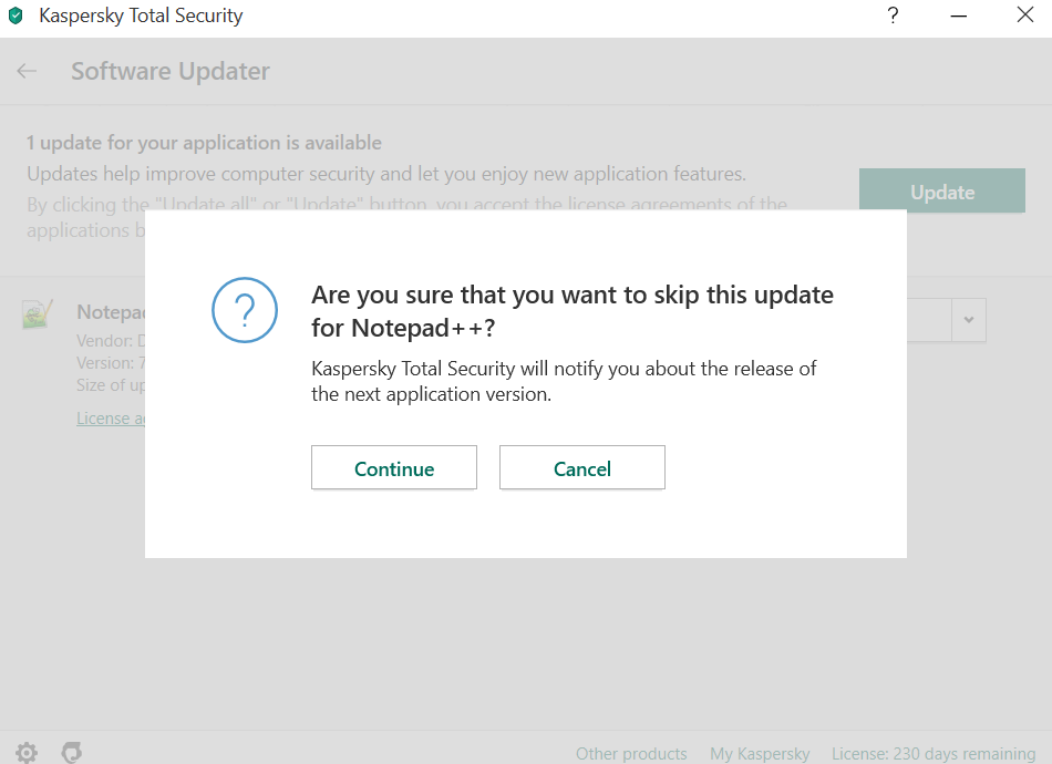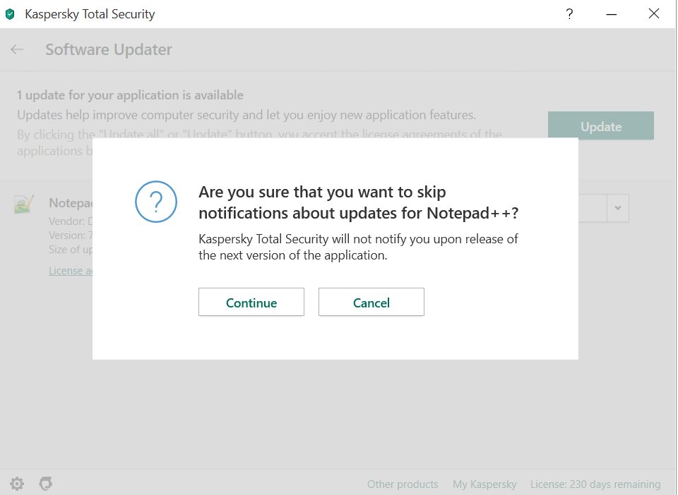 Remove Annoying messages "Application Update Found"