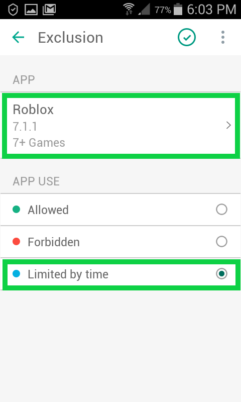 здравствуйте, обратная проблема. устройство ребенка работает по расписанию. все игры заблокированны в определенный промежуток времени, НО Roblox работает в любой момент (доступ на заблокированном экране ВЫКЛЮЧЕН) все игры не работают, а только Roblox открывается. 2 часа искал решение проблемы, ничего не нашел, подозреваю что Roblox система видит не как игру. а что то другое (ведь внутри нее находятся другие игры)