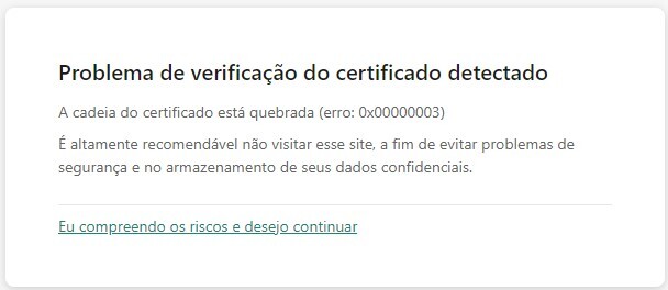 A cadeia do certificado está quebrada (erro: 0x00000003)