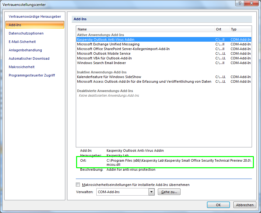 Schwerwiegender Fehler in Outlook Add-In [moved]
