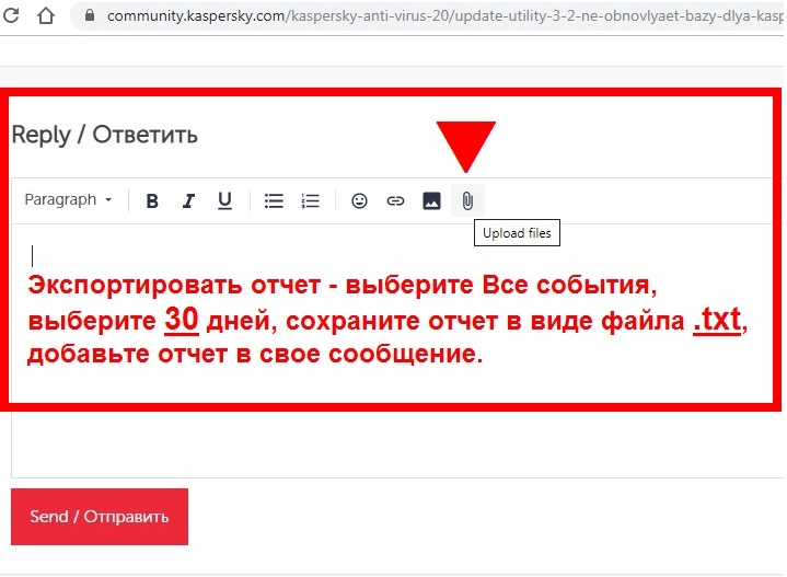 @bafajipiНужен один отчёт неудачного обновления. Выше я давал ссылку, повторю https://support.kaspersky.ru/11142  там инструкция для другой версии, но сильных отличий в интерфейсе нет. Вам нужно включить запись некритических событий, выполнить обновление таким образом что бы оно завершилось неудачно, и ‘экспортировать отчёт. Не забудьте после создания отчёта включить запись некритических событий.