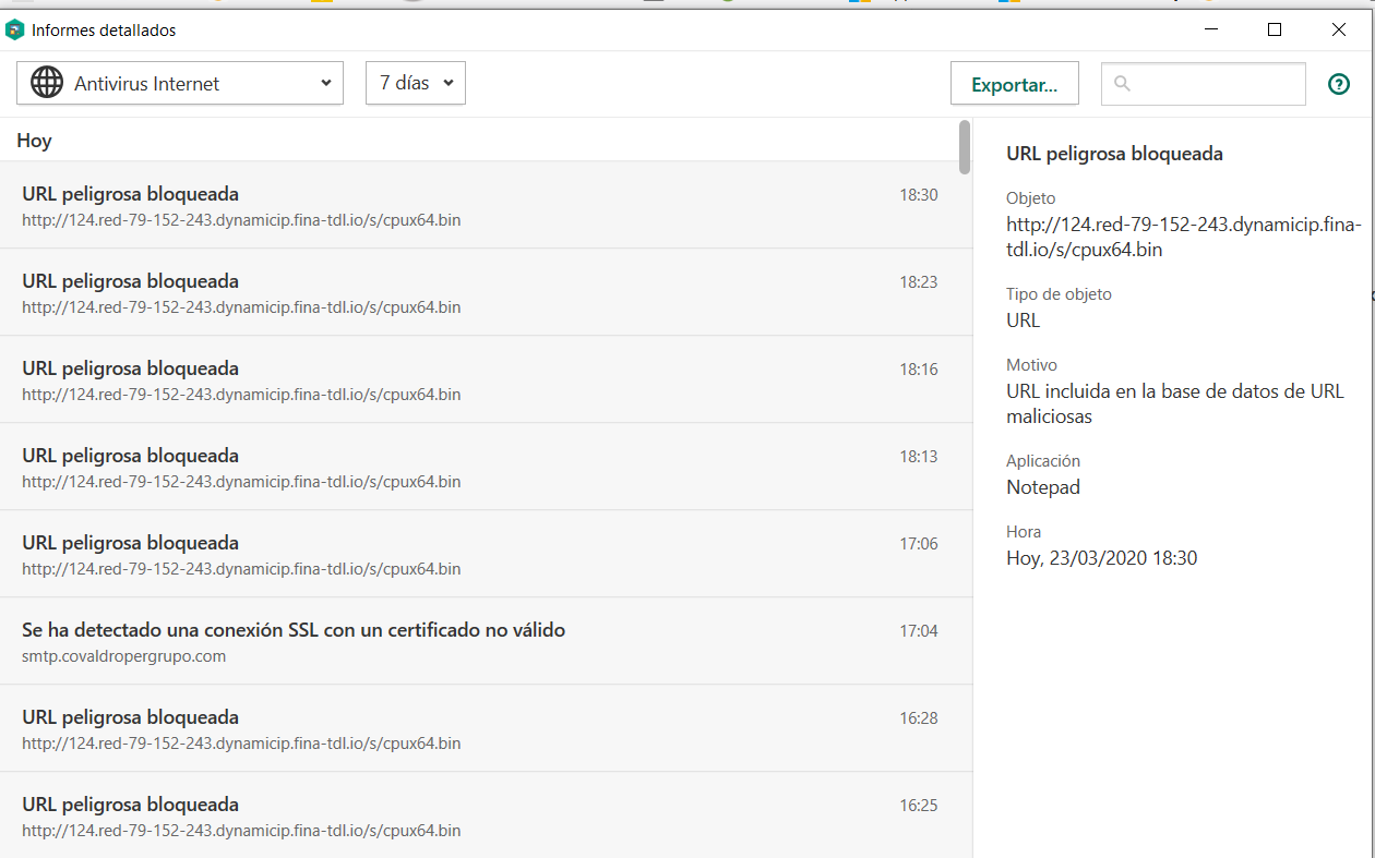 Ahora toca monitorizar el sistema a ver si sigue detectando tu Kaspersky el acceso a dicha URL maliciosa.