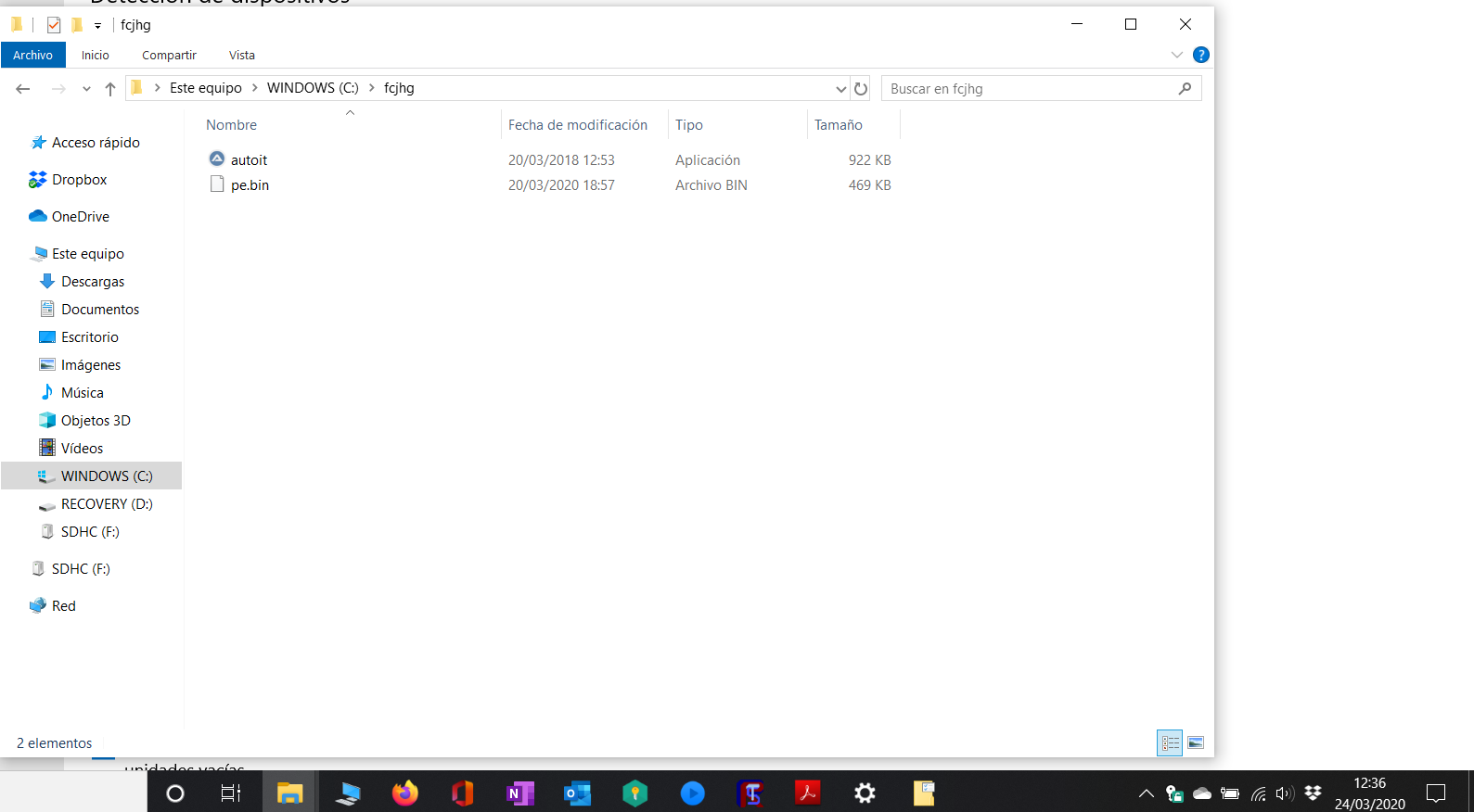 La carpeta C:\fcjhg es lo que estaba buscando, está el AutoIT, que es una utilidad legítima para programación y desarrollo de scripts, peeero se suele usar para colar scripts maliciosos en el sistema, y el .bin es casi seguro cpux86.bin que aparece en las notificaciones de URL maliciosa de Kaspersky, pero con otro nombre.