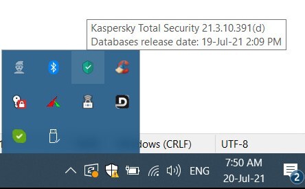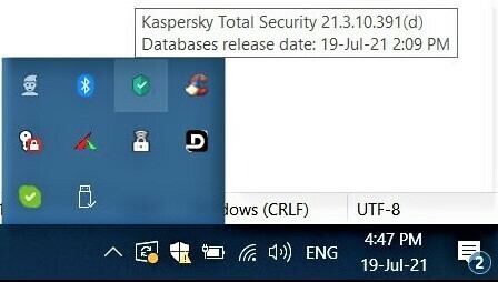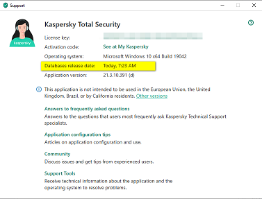 I find that my KIS 21.31.0.391(d) has stopped at 7:04 am (CET-1) when it is my local time at 9:50 pm.