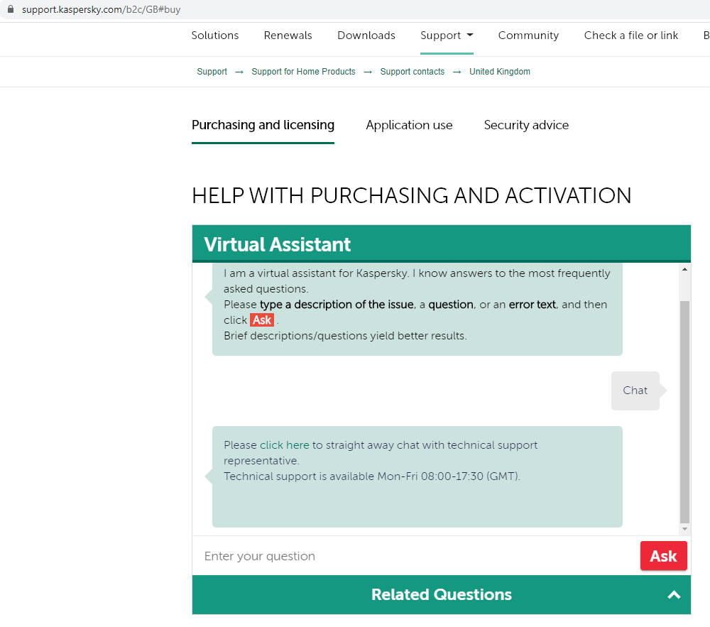 Virtual Assistant, Chat support not available ?