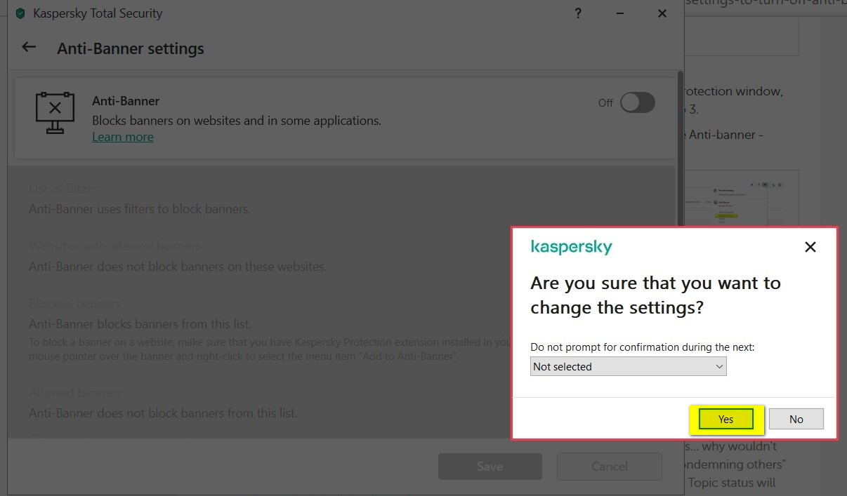 Where are the settings to turn off Anti Banner?