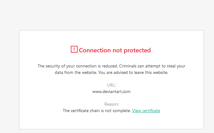 Why do I get this "Connection is not protected" message? "Certificate chain is not complete"