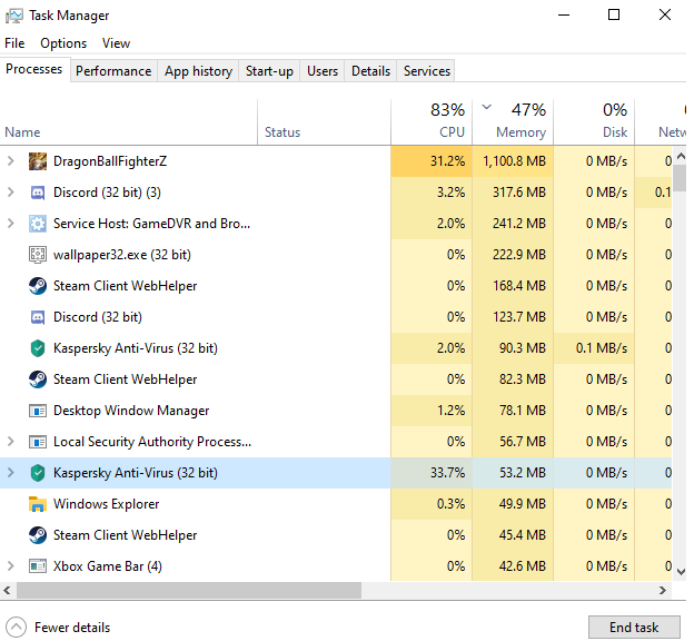 Why does Kasperky anti-virus use 35% of my CPU in the background?