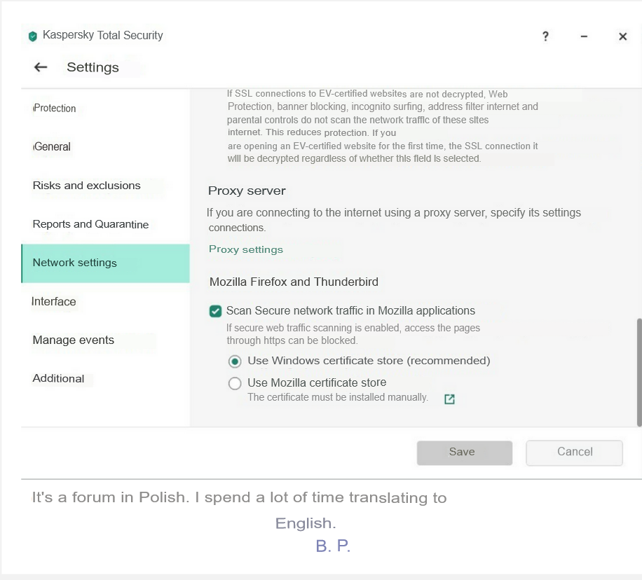 Why is decrypting Mozilla secure encrypted traffic in the KTS default settings? [CLOSED]